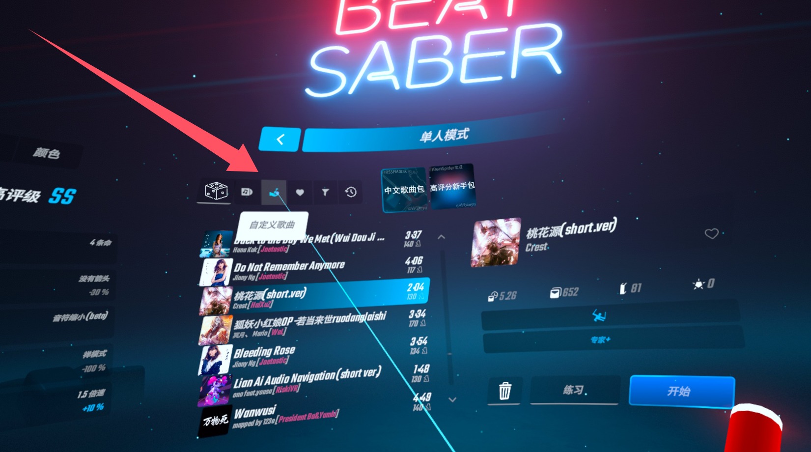 节奏光剑VR Beat Saber VR +MOD+200首歌曲整合汉化版 (含安装方式)